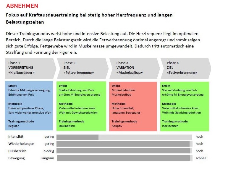 Nach einer individuellen Einstellung jeder Trainingsstation starten sie sofort mit einem bereits an ihr aktuelles Potenzial angepasstes Kraft-/Kraftausdauertraining.