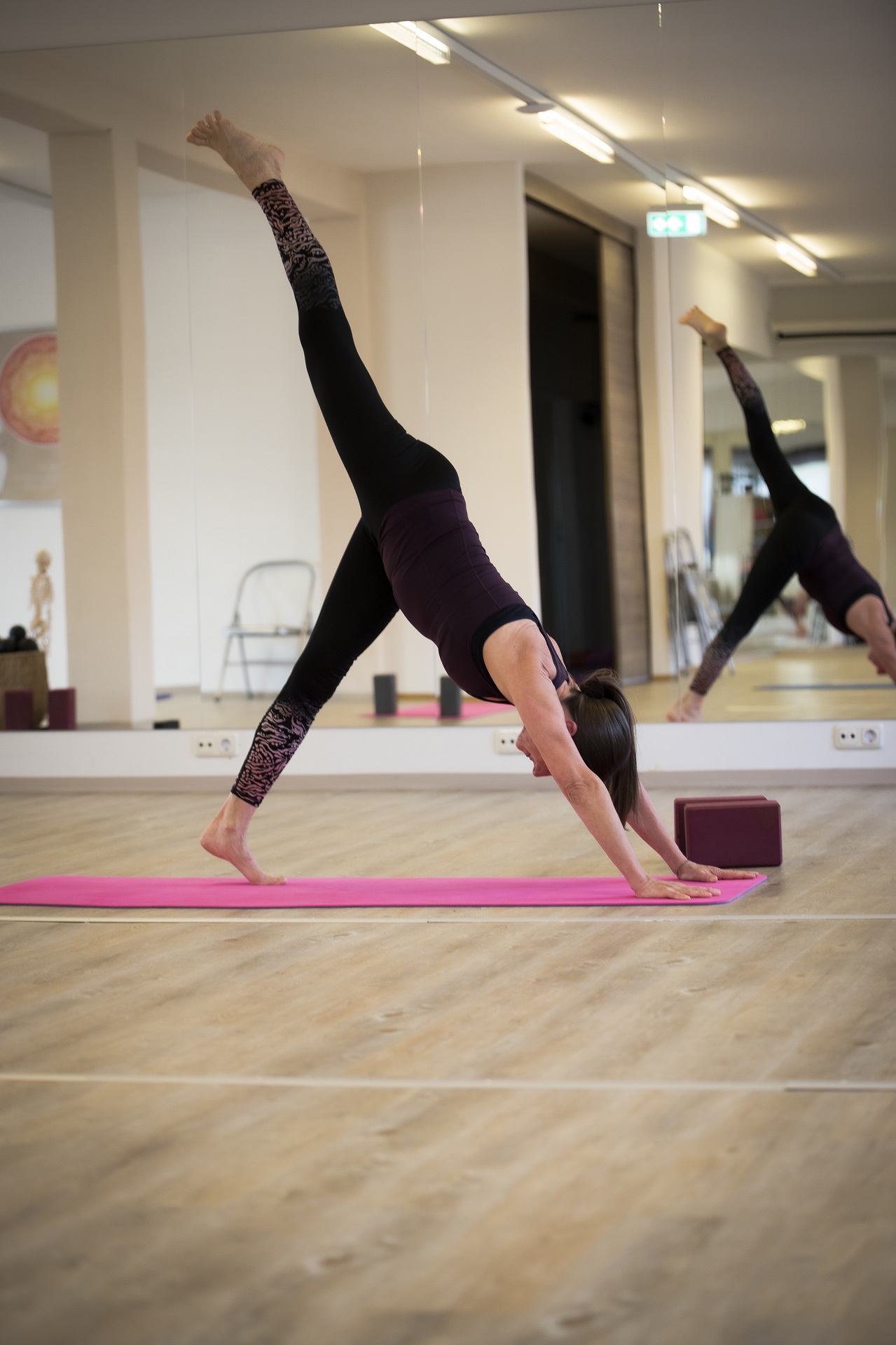 Yogamatte, Yoga-Kissen, Block oder Bolster uvm. Haben wir vor Ort im Studio. Natürlich kann jeder seine eigene Yogamatte mitbringen (Hygiene). Letztendlich brauchst du nur bequeme, nicht zu weite Kleidung, in der du dich gut bewegen kannst. Was du nicht brauchst, sind Socken, denn barfuß besteht keine Rutschgefahr.